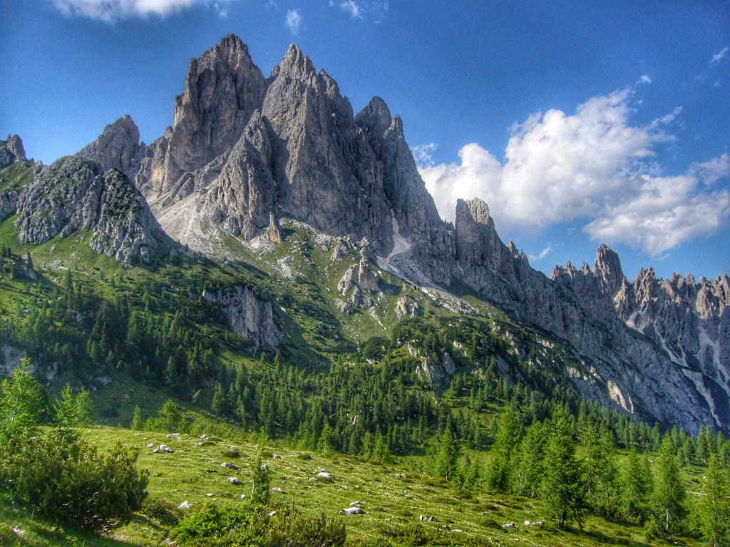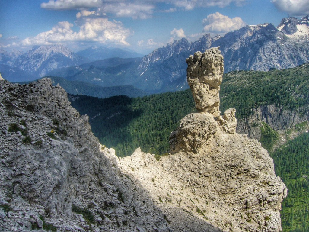 Un lungo, impegnativo e splendido itinerario circolare nel cuore dei Cadini di Misurina, gruppo afferente al comprensorio Dolomiti di Sesto, Auronzo e del Comelico, che si spinge invero più a sud nel Cadore. Rimane all’ombra delle accoste Tre Cime, e un po’ nascosto dal gigantesco, dirimpettaio Sorapiss a mezzodì, eppure questa recondito e spesso snobbato massiccio regala scenari alpini d’ineguagliabile fantasmagoria dolomica. Un selva di guglie, torri e campanili che decollano da profondi e vasti macereti (i “cadini”), cattedrali di gotica foggia, fasciate ai pie’ da fitti baranceti, boschi profumati e praterie fiorite. Se ora vi è chiaro il perchè del Gotico Dolomico, tocca spiegare il motivo della più bella giostra. Il percorso che ho cucito e vi propongo si sviluppa nella sua parte più scenografica lungo un segmento dello spettacolare Sentiero Durissini Est, in una sinuosa e avvincente cavalcata su e giù per quattro acclivi forcelle – par d’essere sulle montagne russe – in un susseguirsi repentino di scenari stupefacenti, che garantiscono un crescendo d’emozioni escursionistiche indelebili. Non inganni la vicinanza con la ridente, caotica Misurina, la Perla del Cadore; benchè l’escursione diparta proprio dalle sponde dell’omonimo pittoresco lago, nell’avvicendarsi di cadini e forcelle incontreremo perlopiù amichevoli orchetti, poichè il selvaggio, magnifico ambiente montano che attraverseremo vi ricorderà le remote plaghe di Mordor (pur in veste amena e solatia), in caso aveste letto o visto Il Signore degli Anelli. La prima parte del giro decorre lungamente per placide mulattiere nell’abetaia fino al Rifugio Città di Carpi con bellissimi colpi d’occhio sulle schiere dei Cadini e sul titanico massiccio del Sorapiss. Segue la faticosa, entusiasmante cavalcata per cadini e forcelle (in sequenza Forcella Cristina, Ciadin de Le Pere, Forcella Sabbiosa, Ciadin Deserto e forcella omonima, Forcella della Torre,)che presenta qualche passaggio più tecnico, talora terreno delicato e friabile, ed esige la giusta determinazione. Ai pie’ del Castello Incantato tireremo il fiato e ci rimarrà soltanto da valicare Forcella de Rimbianco, per divallare più dolcemente lungo l’omonimo cadino a chiudere l’anello sulle rive del Lago d’Antorno. Per lunghezza, fatiche complessive e impegno tecnico l’uscita è rivolta ad escursionisti allenati o in buona forma fisica, con un minimo d’esperienza su terreno alpino ripido, friabile e un poco aereo.